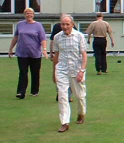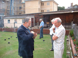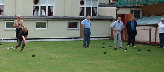 Watching the head on rink one, whilst on rink two the secretary delivers a winning bowl.