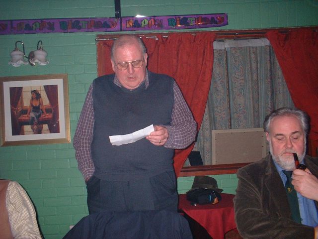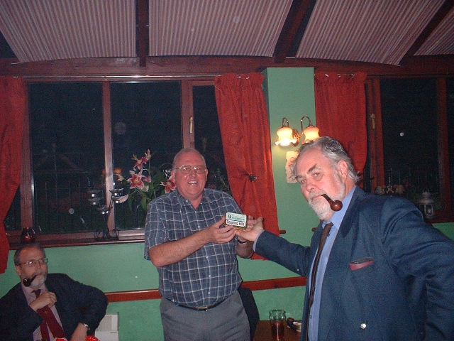 | Runner-up Len Ellis receives a tin of tobacco from PCN secretary, Keith Garrard |
