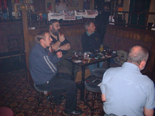 | John Eason, Reg, John Betts discuss how to nobble Len. |