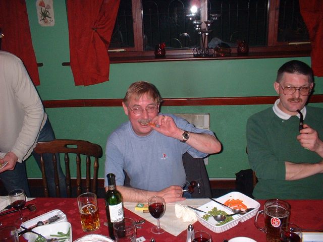 | Frank King tries to smoke a carrot. Had he been drinking???? Colin Wylie looks on in disgust. |