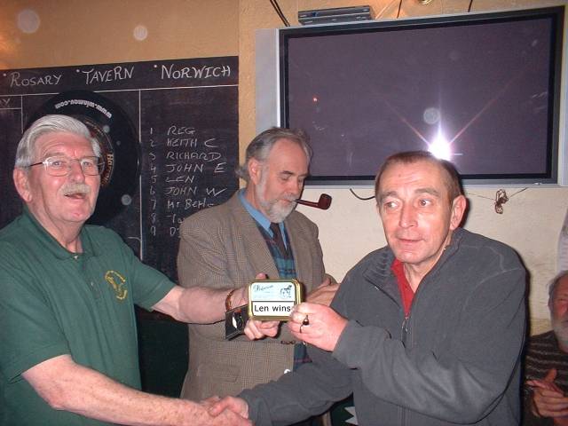 | Len wins and receives a prize from the secretary. Keith Coleman was highest scorer |
