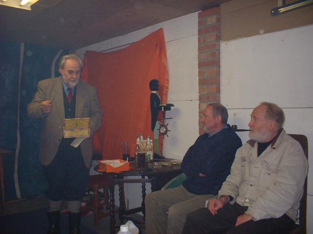 Christmas Draw time, and a fine seasonal buffet was on offer for a cold winter's evening. 41 prizes were up for grabs for those lucky enough to be drawn out by the Chairman. The top prize winners were John Eason and The Secretary, with seven winning tickets each (pause here for gasps of surprise). Among the array of prizes were a pipe rack lovingly constructed by Tony Larner. There was also an excellent Meerschaum pipe, a Rattray's selection box of tobacco, Christmas puddings and a mystery prize (since gorged by said JH Eason. I hope it gave him pleasure).