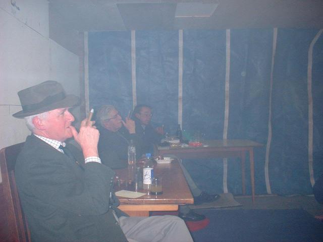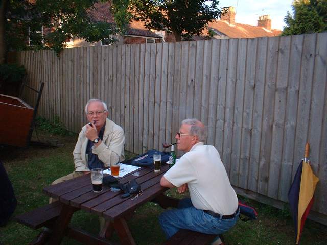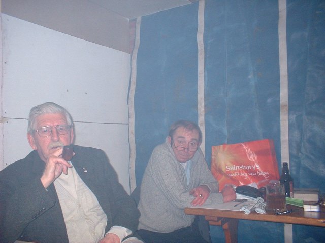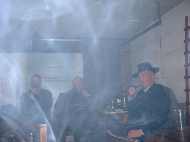 An occasional bit of fun - the cigar smoking competition. King Edwards kindly donated by Tony were smoked to see who could develop the longest ash. Chairman Len and vice-chairman Reg were the joint winners with a creditable three inches.