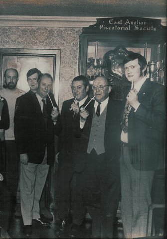 Keith Garrard did not really get going and was out after only three minutes. Three people went out soon after the 40 minute mark, leaving Len Ellis to battle it out with Tony Larner for the gold medal spot. Len recorded a time of 44'50, leaving Tony the winner with 51'50. The winner was presented with a pipe and the runner-up a tin of tobacco. John Walker's atmospheric photographs of this prestigious event appear on the PCN Website.
