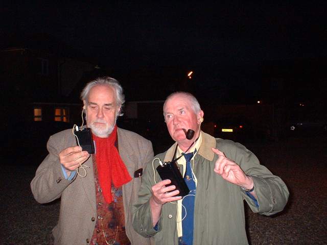 | Keith and Reg listen intently for bats |
